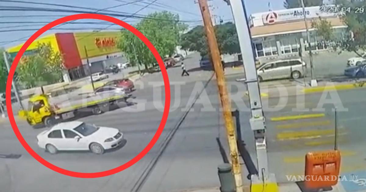 El conductor de una grúa fue captado en video por una cámara de seguridad, realizando una maniobra prohibida sobre el bulevar Venustiano Carranza y su cruce con Chiapas, en la colonia República, en Saltillo.