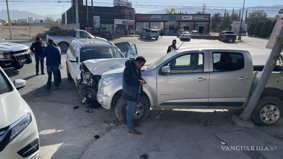 Un joven por poco termina prensado al interior de su camioneta al serle chocar y lanzada contra un poste de alumbrado público, en el fraccionamiento Quinta Real.