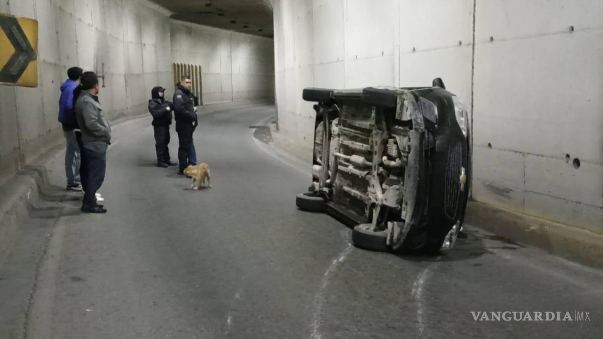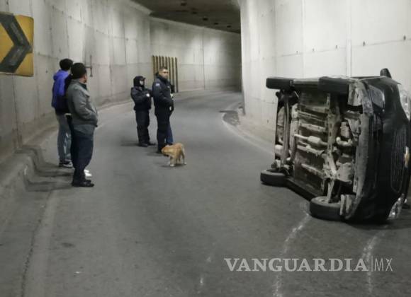 El conductor de un vehículo de la marca Chevrolet terminó volcado después de que este tratara de rebasar sobre el deprimido del distribuidor vial El Sarape, al oriente de Saltillo.