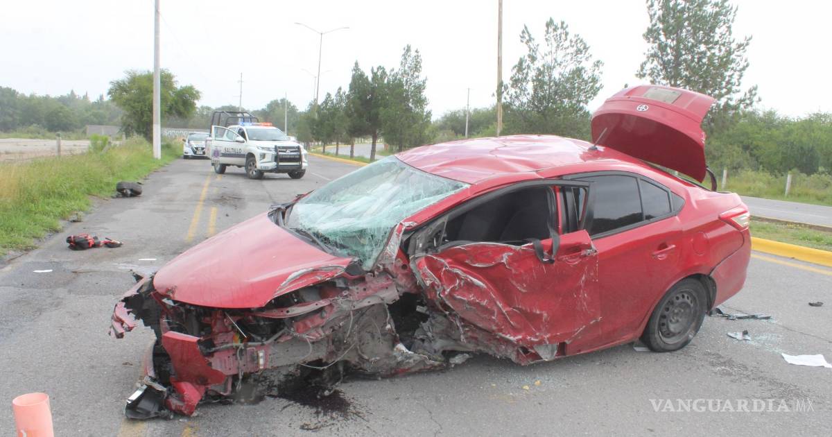 Saltillo: joven termina herido y con su auto destrozado tras volcar en Jardines de Versalles