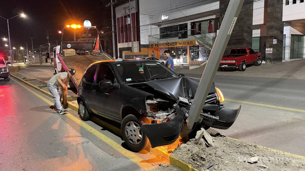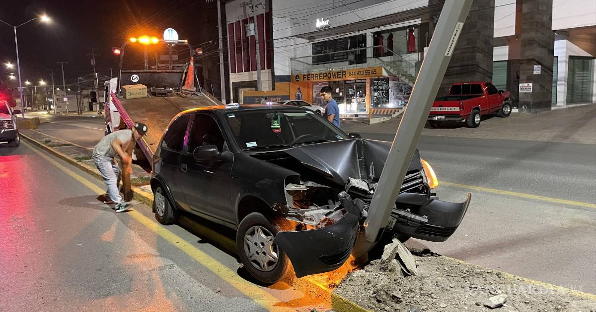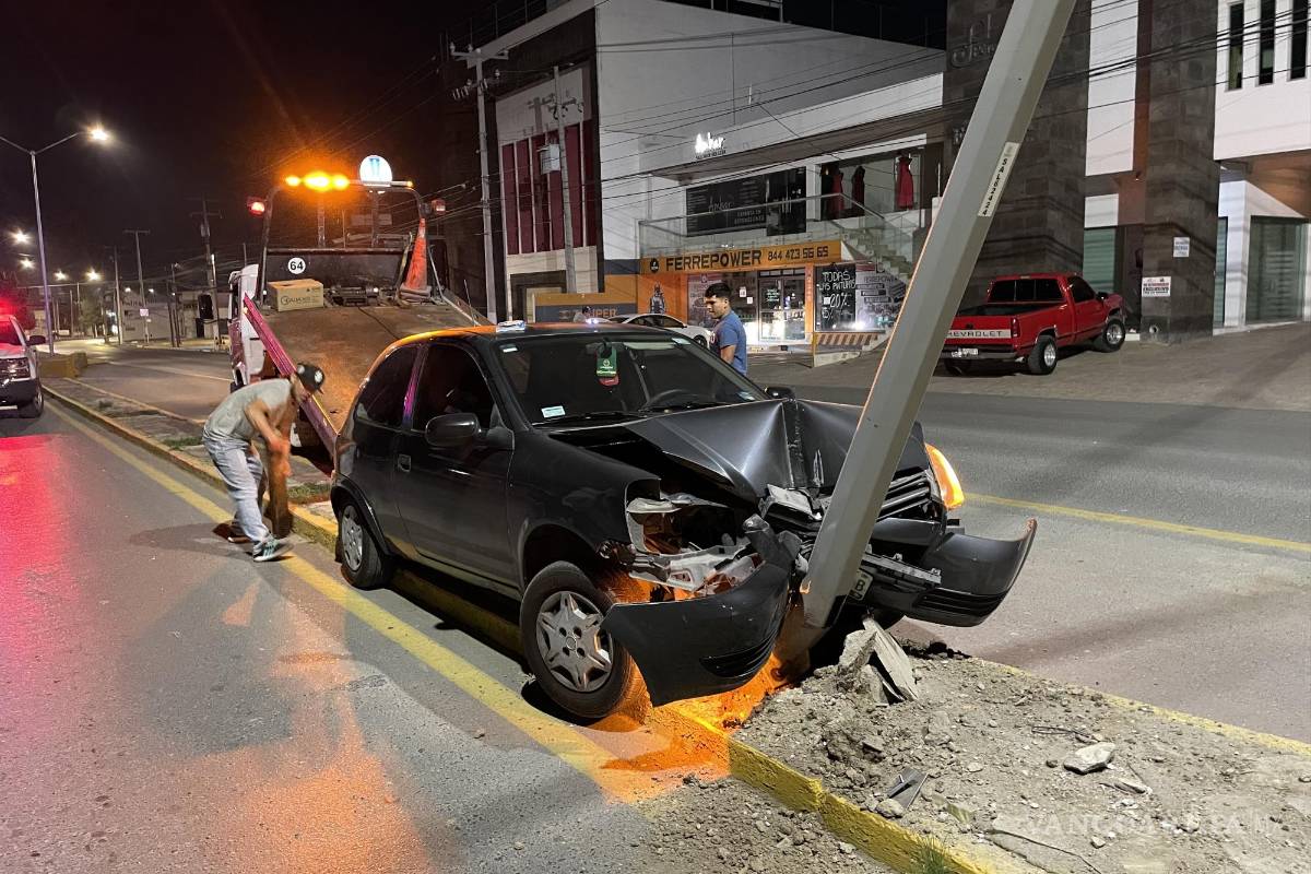 Un joven en presunto estado de ebriedad terminó la parranda tras las rejas y con su auto destruido, luego de perder el control de su automóvil e impactarse contra una luminaria en el bulevar Musa de León, al norte de Saltillo.