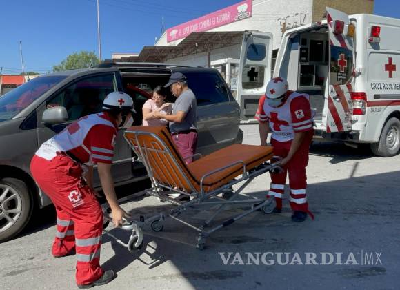 Una mujer fue atendida por personal paramédico de la Cruz Roja tras haber resultado lesionada al chocar su camioneta contra otra mientras ambos vehículos circulaban por Pedro Ampudia, a la altura de la colonia Guayulera.