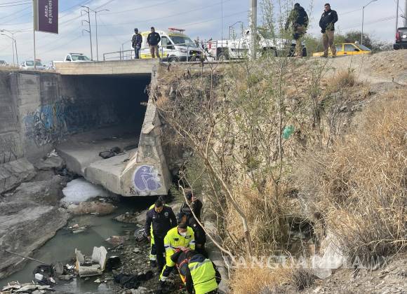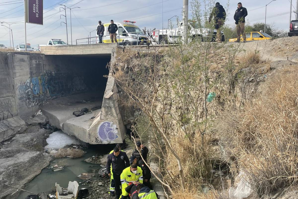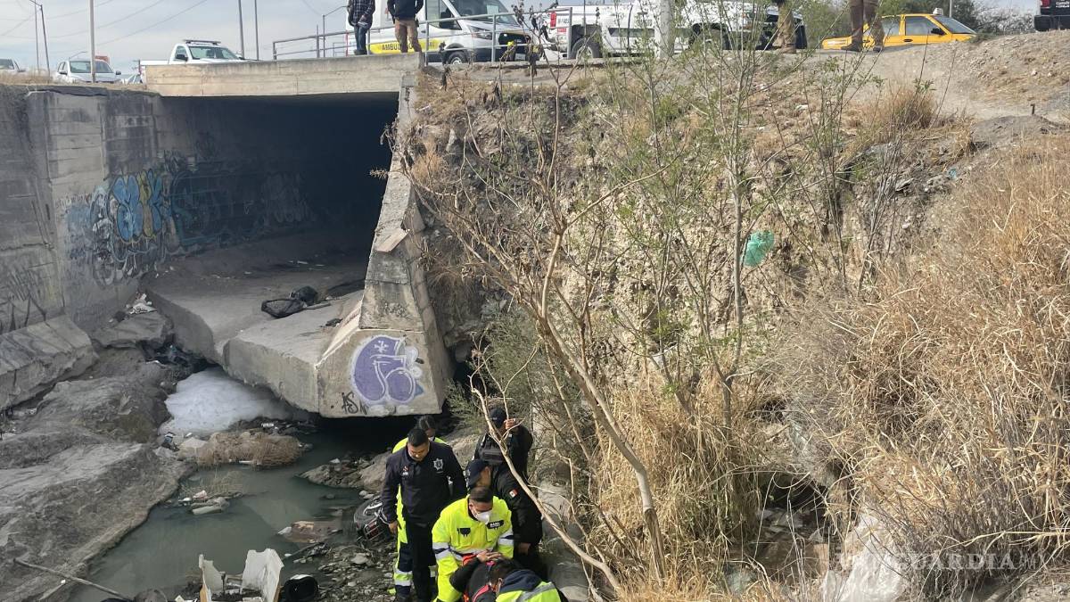 Saltillo: por tomar atajo, motociclista cae a arroyo con todo y el tanque de gas que cargaba