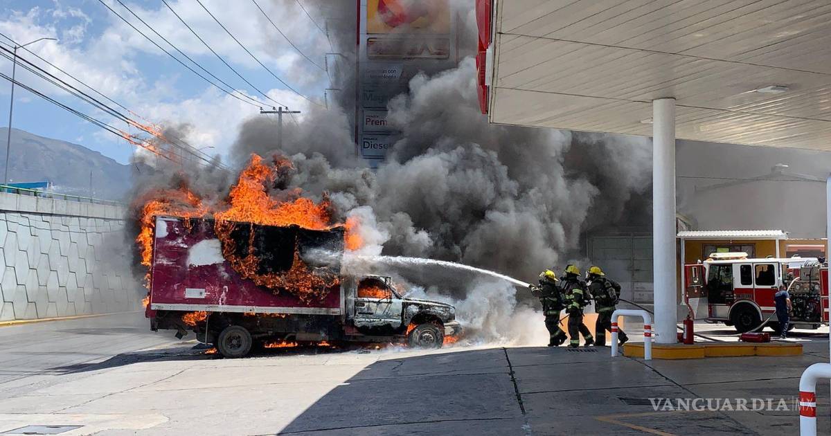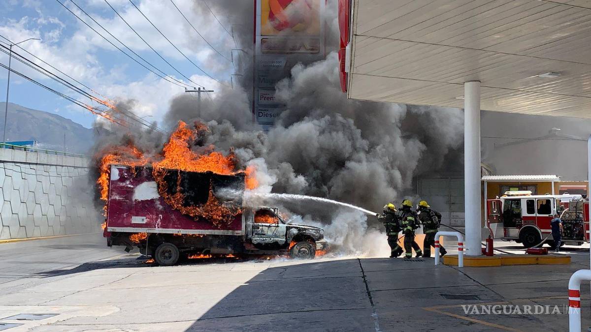 Saltillo: se le incendia camioneta y la abandona... en una gasolinera