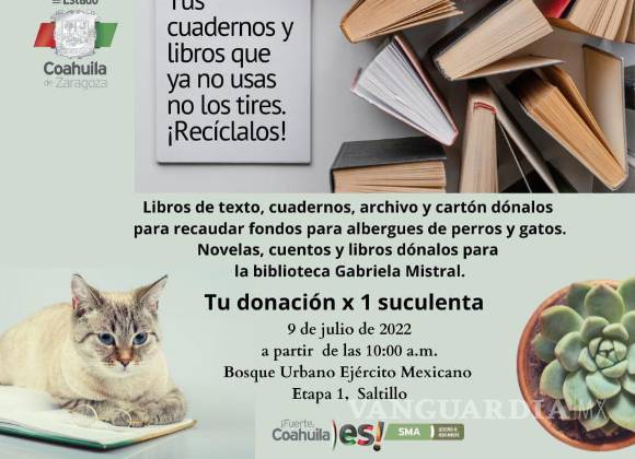 Saltillo: ¡trae tus libros y ayuda a un animalito!; SMA convoca a donación de papelería