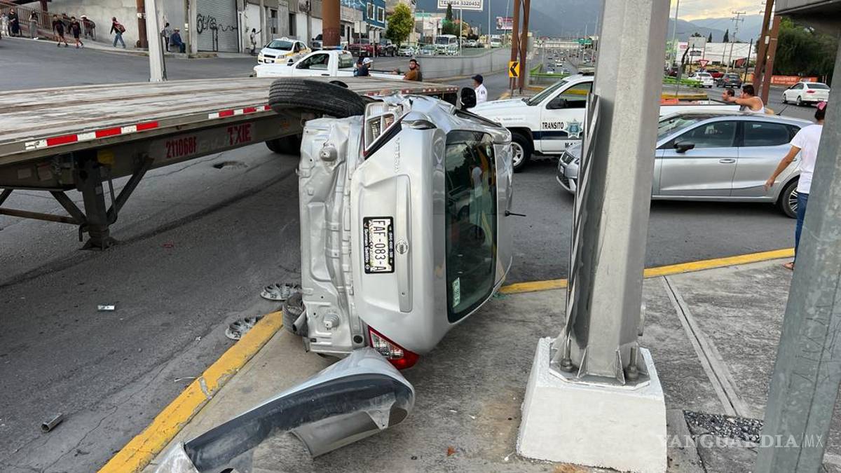 Saltillo: tráiler embiste auto en la entrada de la Guerrero