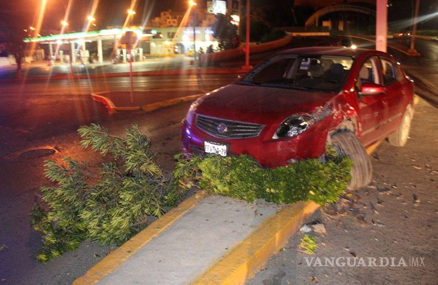 Saltillo.- Borrachin no quería que se acabara el fin de semana y caro le salió seguir la fiesta, y es que cerca de las 12:30 de la madrugada de este lunes Armando Martínez de 32 años y se llevó un carro y se trepó al camellón tumbado varios árboles.
