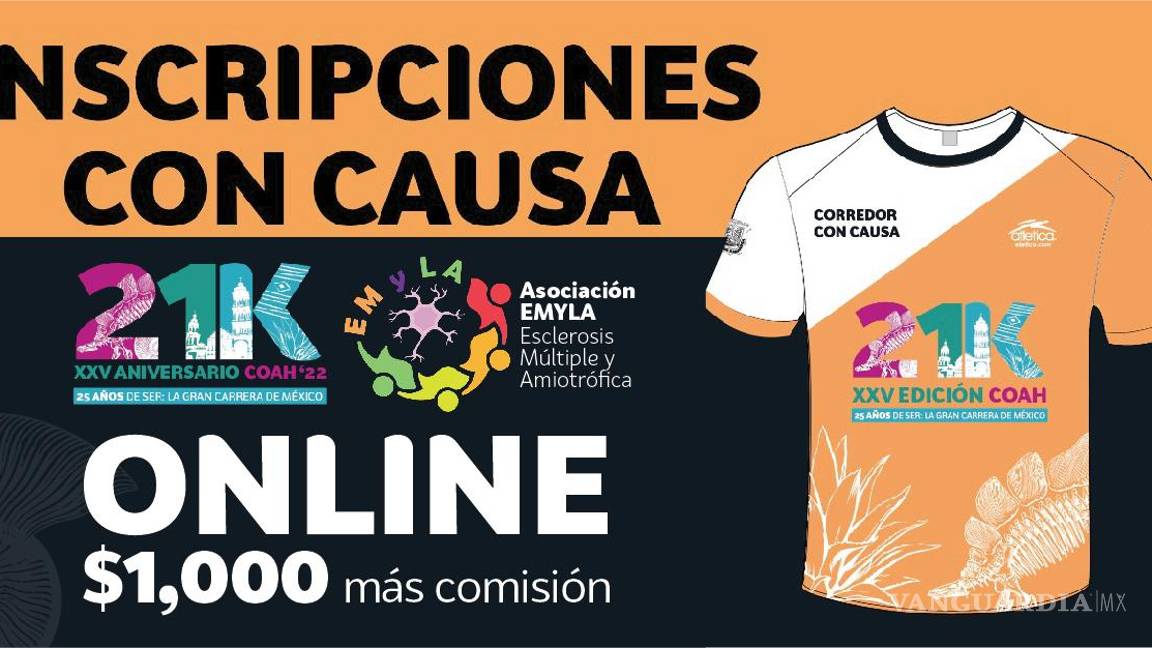 La inscripción cuesta mil pesos más el cargo del servicio online en la página www.21kcoahuila.org, y está abierta a partir de este 7 de mayo hasta el 6 de junio.