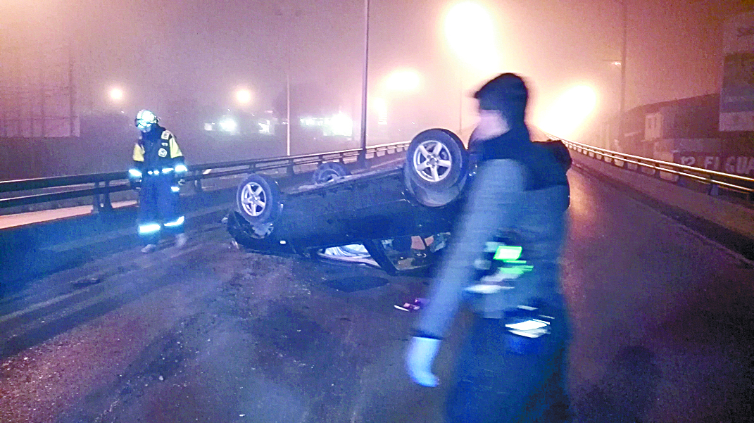 Cerca de las 02:30 horas, vecinos de este sector dieron aviso a las autoridades luego de escuchar el tremendo estruendo al momento que un auto tipo Jetta con placas de Monterrey SNH—1690 volcara sobre el puente debido al exceso de velocidad en el que circulaba y la falta de visibilidad provocada por la niebla que había en ese momento.