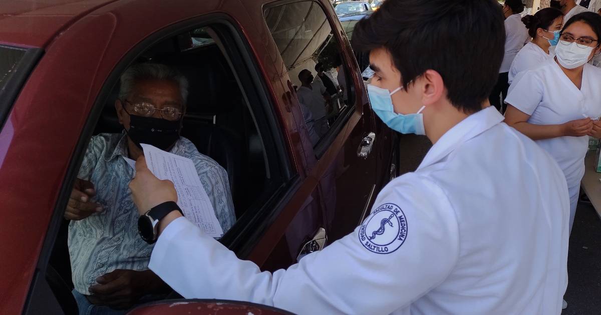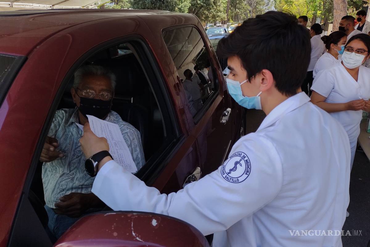 Abuelitos reciben vacuna al segundo intento; se formaron a pie en módulo vehicular de Saltillo
