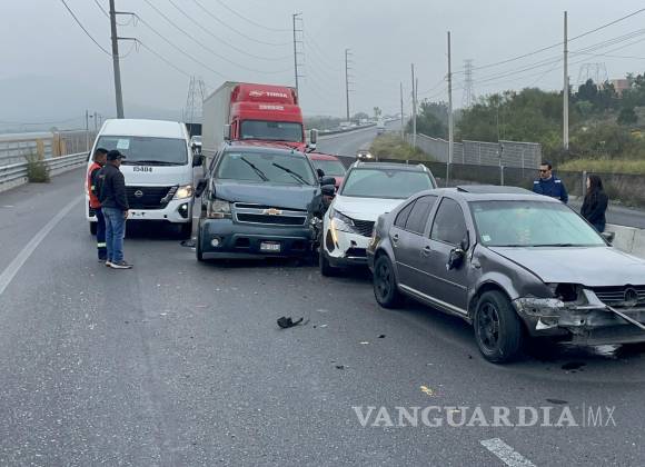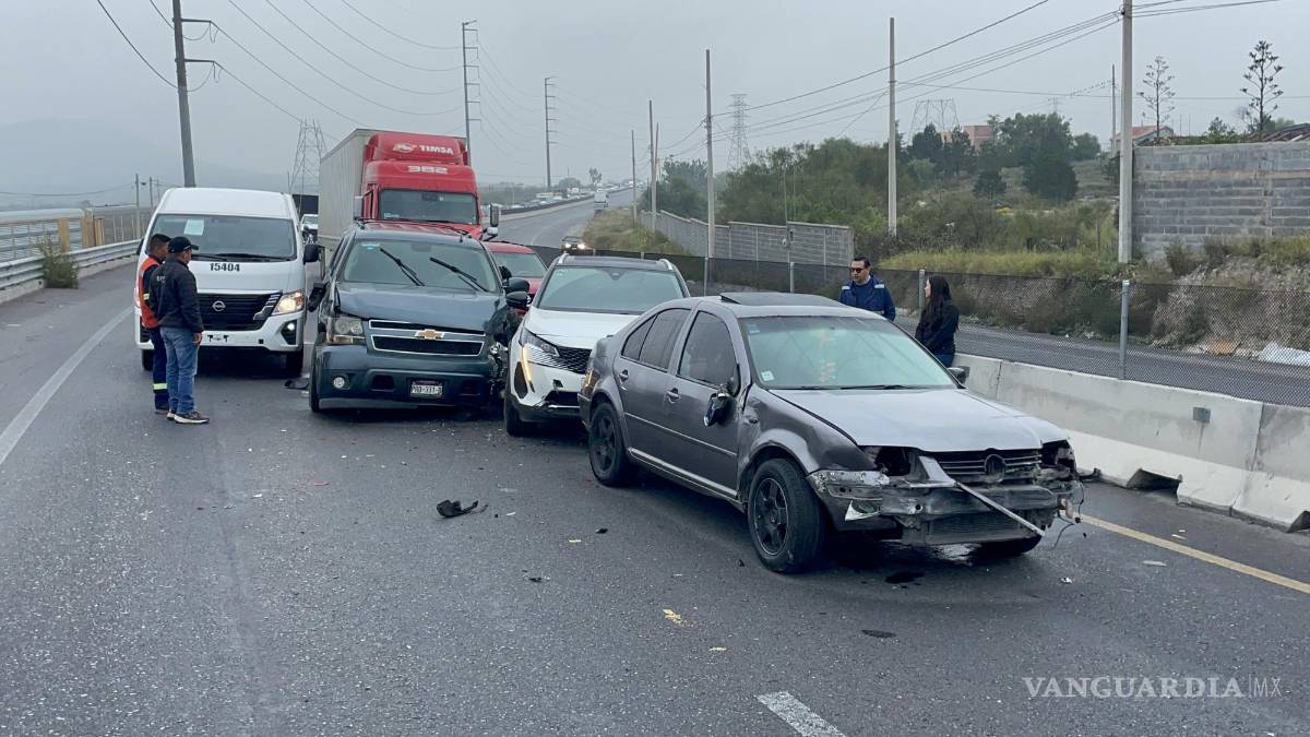 Un accidente a la altura del kilómetro 235 de la carretera a Zacatecas dejó como saldo cinco vehículos afectados que quedaron en medio de la vialidad, la cual resultó afectada por más de una hora.