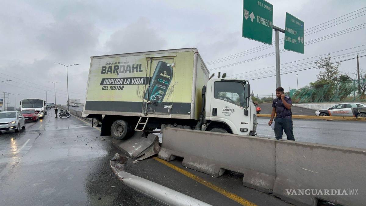 El incidente ocurrió alrededor de las 3:00 de la tarde, cuando el conductor de un camión Isuzu, Omar Isaí, perdió el control de la unidad mientras descendía del puente que conecta con el bulevar Nazario S. Ortiz Garza. Debido al pavimento mojado por las ligeras lluvias, el camión de tres y media toneladas se impactó contra cuatro bloques de concreto perimetrales.
