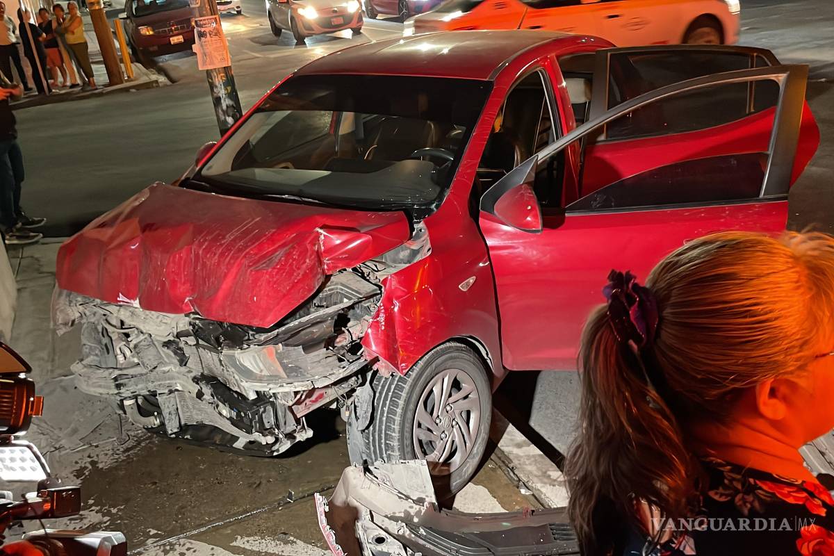 Un fuerte accidente automovilístico entre un camión urbano de la ruta 2B y un vehículo de aplicación (InDriver) dejó como saldo a una mujer lesionada, la tarde de este lunes en el cruce de las calles Manuel Pérez Treviño y Abasolo, en el centro de Saltillo.