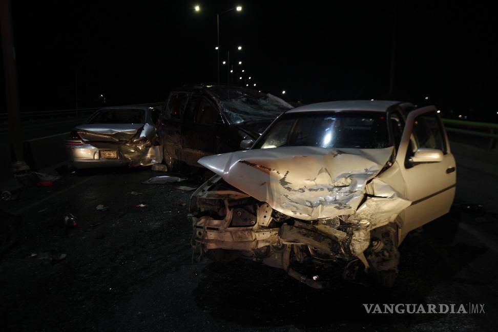 SALTILLO, COAH.- Luego de una falla mecánica, el conductor de una camioneta subió a la cuneta y volcó cayendo encima de un automóvil, provocando que otro se impactara al obstruir la vialidad, accidente múltiple que dejó cuatro personas lesionadas entre ellas el responsable de este accidente.