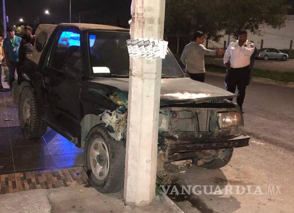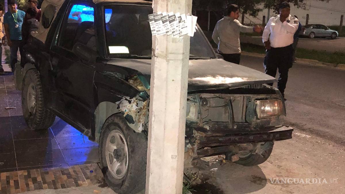 Por circular a exceso de velocidad, el conductor de un vehículo Nissan terminó impactándose contra una camioneta que se encontraba estacionada, la cual fue proyectada contra un poste de concreto, al oriente de Saltillo.