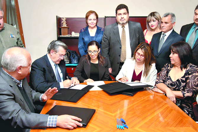 El rector José Blas Flores y María de la Luz López, secretaria general del STUAC, firmaron ayer al mediodía el contrato colectivo de trabajo correspondiente a 2016, ante la subsecretaria de Justicia Laboral de la Secretaría de Trabajo del estado, Tanya Castillón Meza, el presidente de la Junta Local de Conciliación y Arbitraje, Ricardo Aguirre Cuéllar y miembros del STUAC.