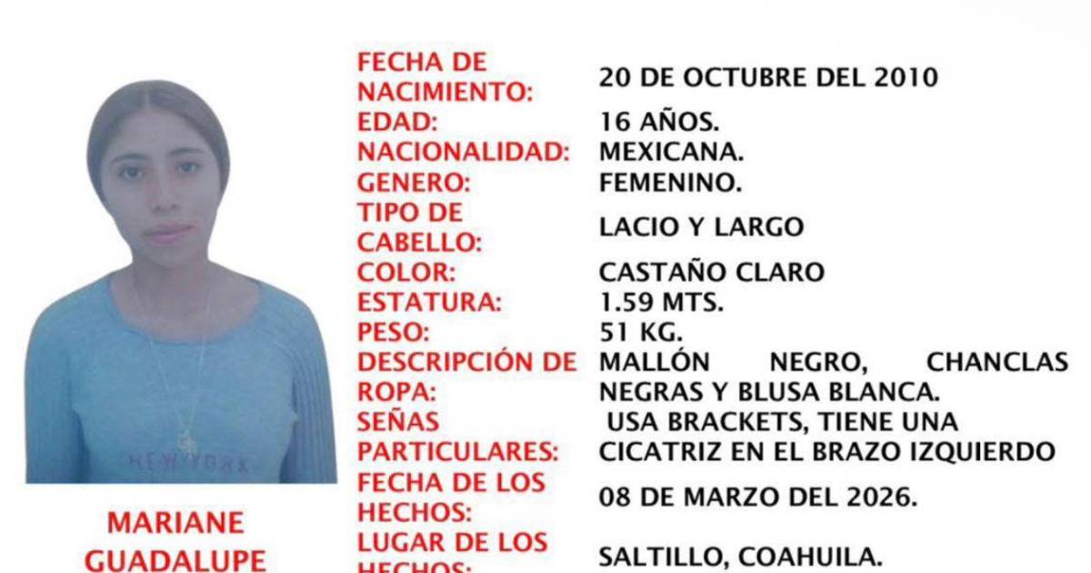 Cualquier dato que ayude a localizarla puede ser reportado a los teléfonos de la Fiscalía de Personas Desaparecidas al (844) 438 07 00.