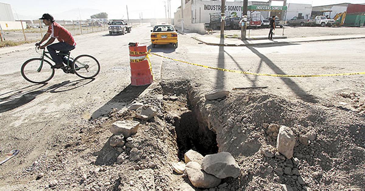 En el trayecto de cuatro cuadras se puede apreciar una larga zanja, enormes baches rodeados por piedras y banquetas en mal estado, ante el abandono de la obra de un programa de rehabilitación y sustitución de tuberías en la colonia Asturias que empezó con sus primeros trabajos en mayo del año pasado, en manos del Municipio y Aguas de Saltillo.