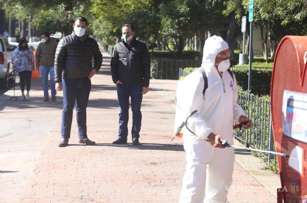 El alcalde Manolo Jiménez Salinas, en su recorrido por la Alameda Zaragoza, insistió en que es necesario que exista corresponsabilidad entre sociedad y gobierno para frenar el número de contagios.
