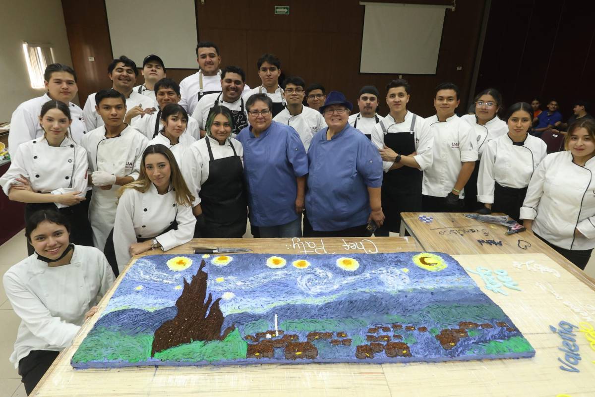Asimismo, los estudiantes crearon una representación comestible de La noche estrellada, uno de los cuadros más conocidos de Van Gogh, que consistió en un pastel de 1.80 metros por 90 centímetros, que combinaba una amplia gama de sabores.