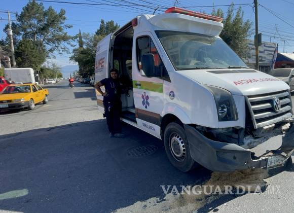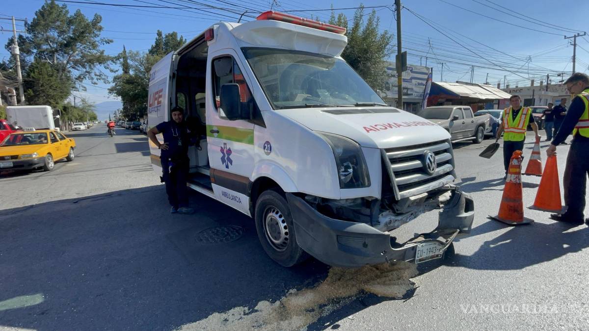 Ambulancia choca contra auto y lo saca del camino, al norte de Saltillo