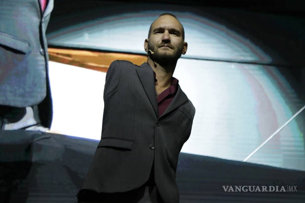 Con 35 años de edad, Nick se postró sobre una mesa, justo en medio del escenario del auditorio, para narrar de principio a fin la experiencia de su vida al lado de un padecimiento de tetra amelia, la causa de que las extremidades no se desarrollaran desde el nacimiento.