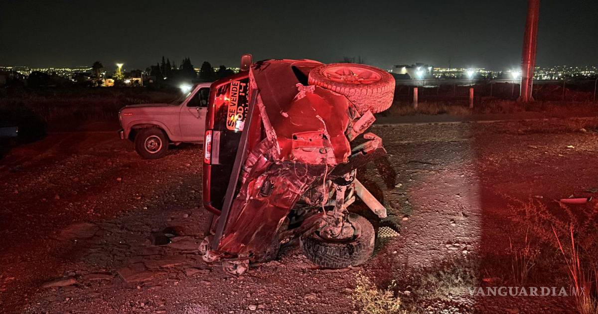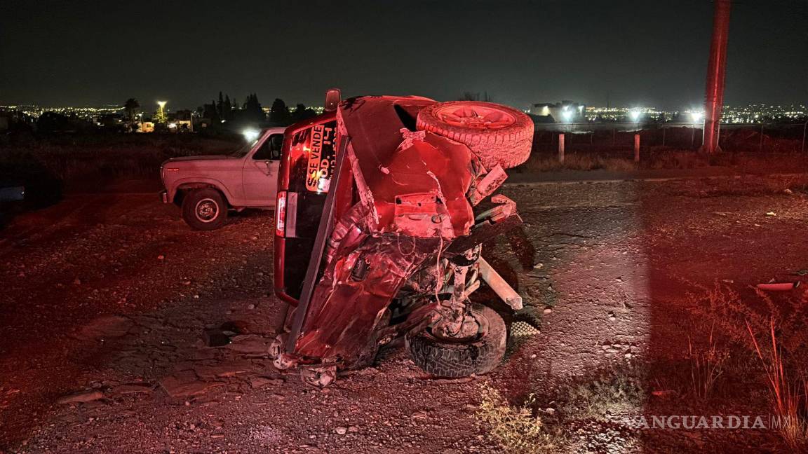 Aparatoso choque con volcadura deja cuatro jóvenes lesionados al oriente de Saltillo