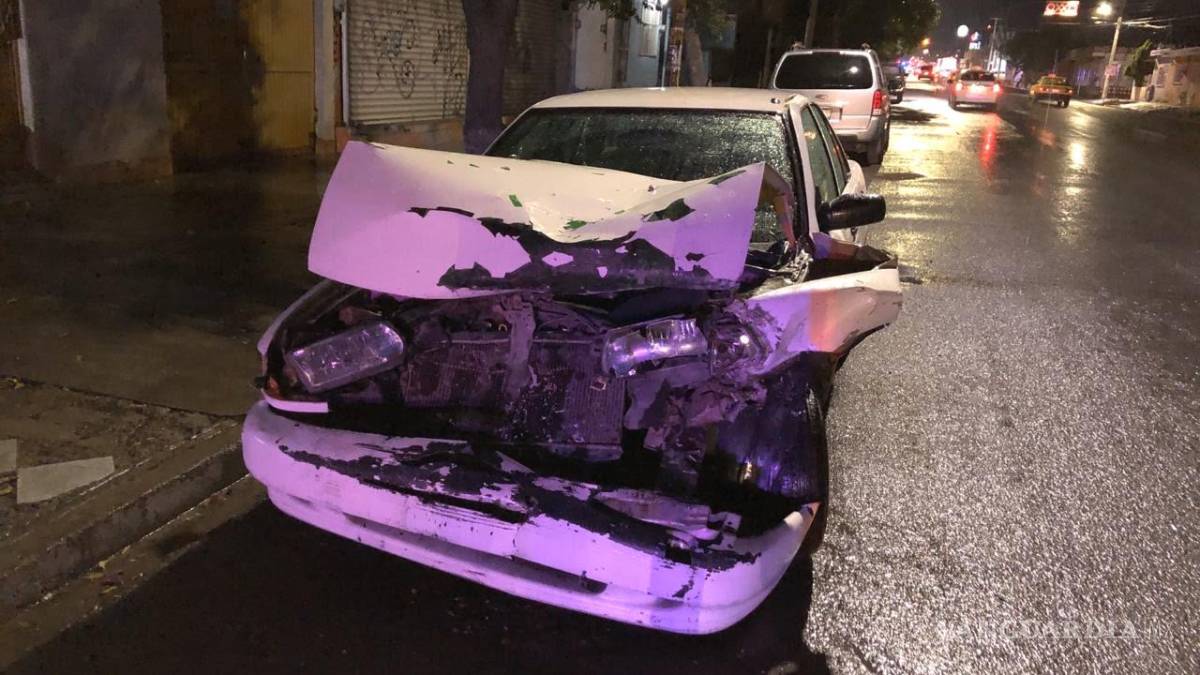 Minutos antes de la media noche de este domingo  los cuerpos de emergencia recibieron una llamada de auxilio en donde les reportaron un accidente en el cruce de las calles Pedro Ampudia y José María. Se trataba de una colisión entre un Tsuru y una camioneta, así que rápidamente se trasladó una unidad de Tránsito Municipal.
