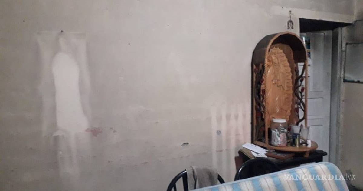 En la casa de Petra Reyes Contreras la silueta de la Virgen de Guadalupe se dejó ver en una de las paredes justo cuando su hijo estaba pintando.