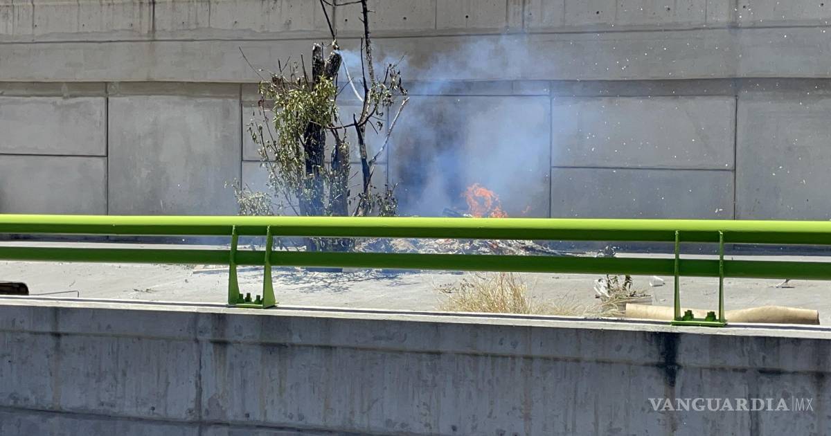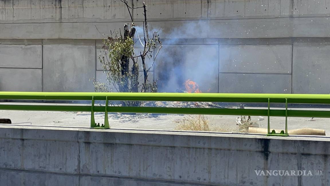 Personal del cuerpo de Bomberos acudió a atender un incendio registrado en las inmediaciones del distribuidor vial ¨El Sarape¨, en Saltillo. Tras una búsqueda en la zona, localizaron un árbol en llamas a un costado de los puentes.