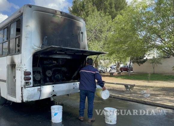Arde en llamas camión de la ruta 17 en Saltillo; pasajeros y vecinos logran sofocar el incendio