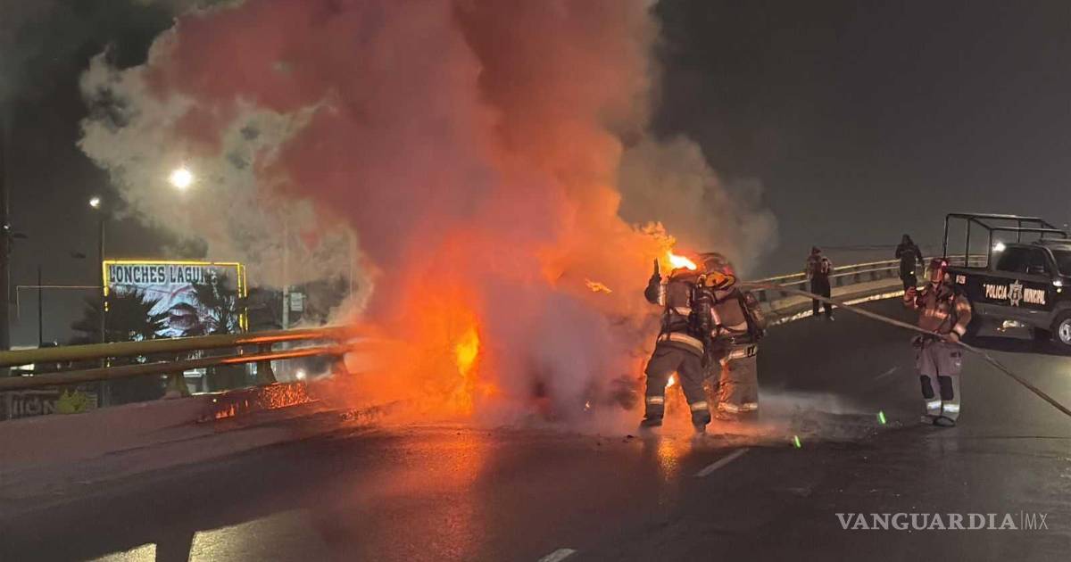 Arde en llamas camioneta tras falla mecánica en el periférico LEA de Saltillo