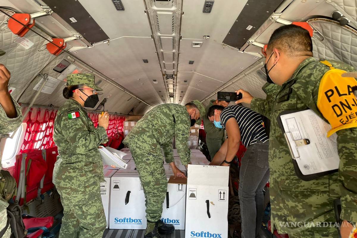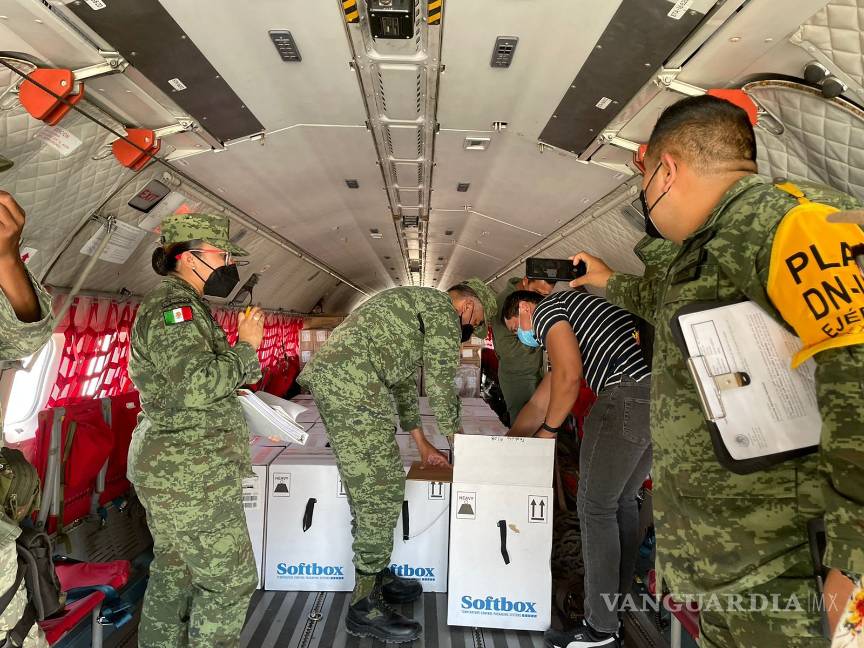 Roberto Bernal Gómez, titular de la Secretaría de Salud, informó que el equipo de Epidemiologia y Vacunación recibió estas dosis en condiciones y temperaturas adecuadas en la Base Militar Aérea en Torreón.