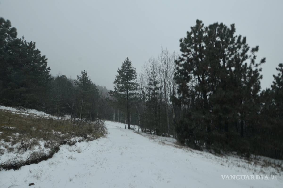 Cubierta de blanco amaneció la sierra de Arteaga, en Coahuila, debido a la intensa nevada que se registró desde tempranas horas de ayer.
