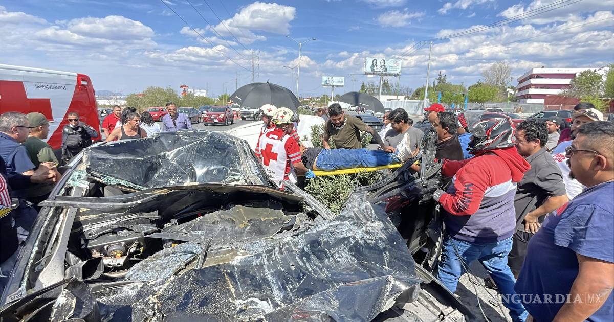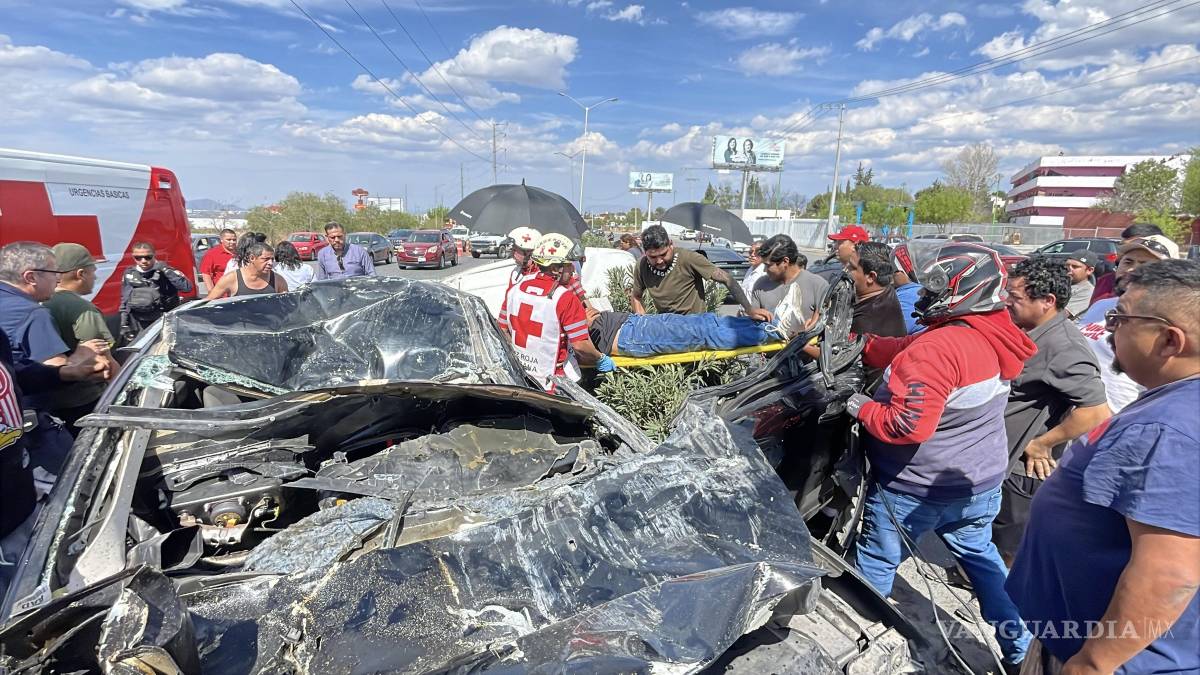 Auto sale volando y termina sobre otro, al sur de Saltillo; hay dos lesionados