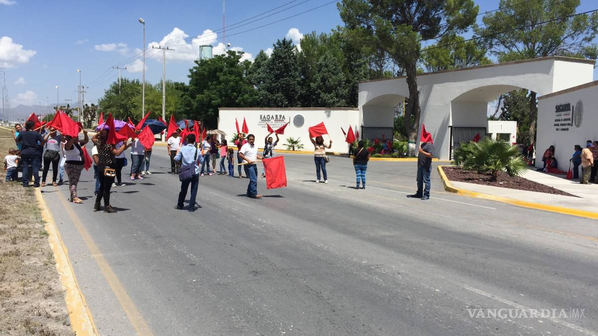 En protesta porque la Sagarpa no les ha entregado ayuda para la siembra de sorgo y avena, unos 100 integrantes de Antorcha Campesina bloquearon ayer la vía lateral de la carretera 57, justo frente al edificio de la dependencia federal al oriente de Saltillo.