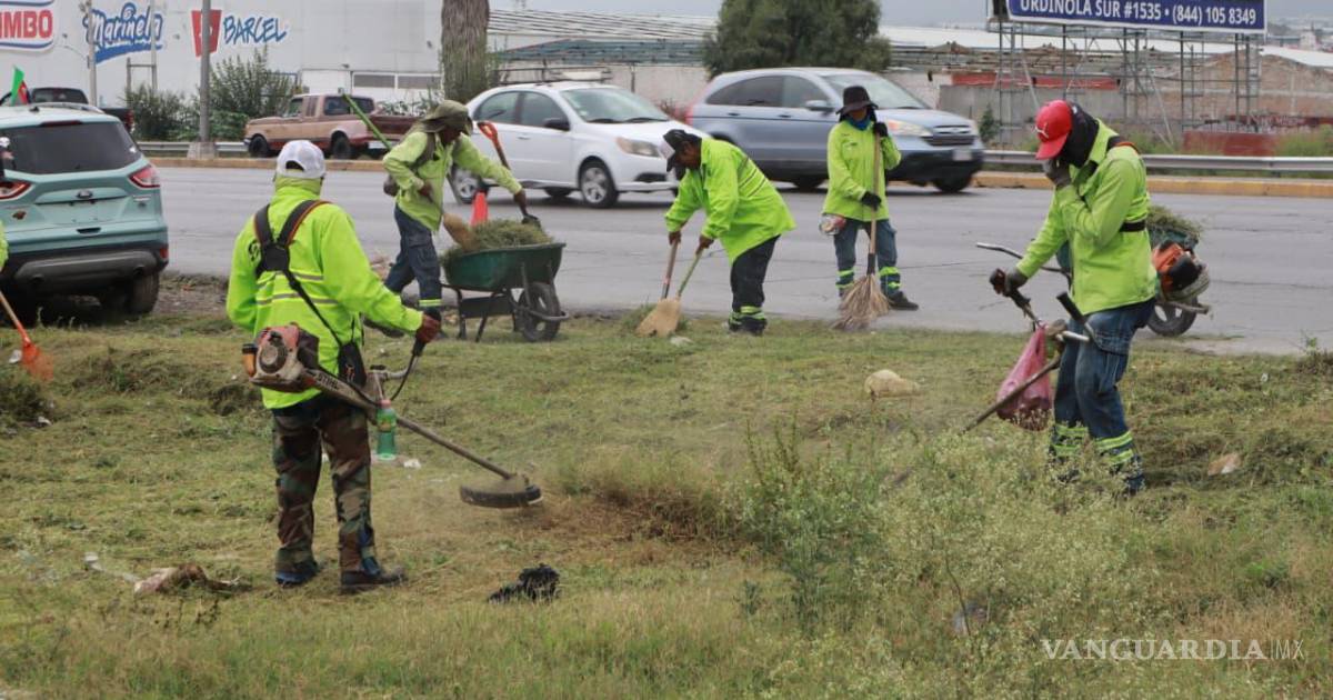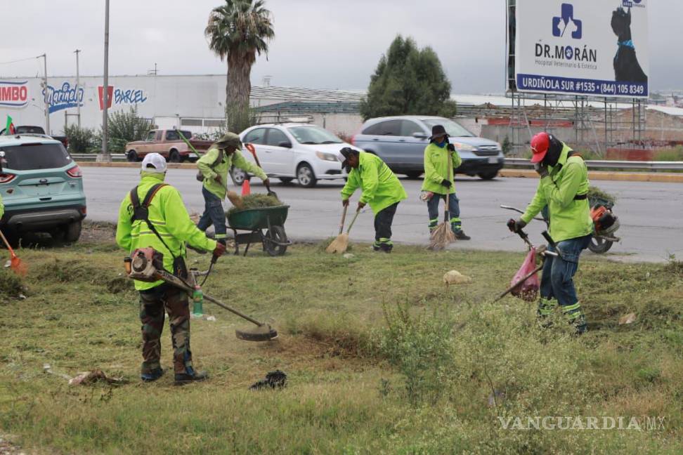 Brigadas de ‘Aquí andamos’ limpian plazas y vialidades de Saltillo