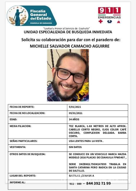 Desde la tarde de este Martes, se emitió una pesquisa de búsqueda de Michell Salvador Camacho Izaguirre de 34 años de edad.