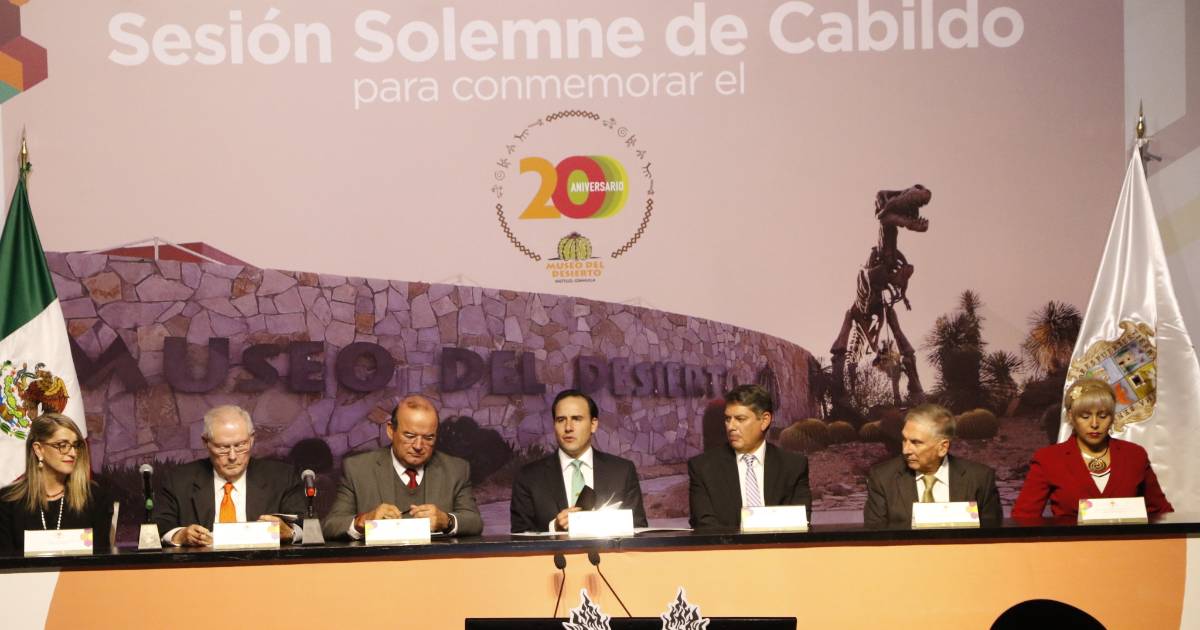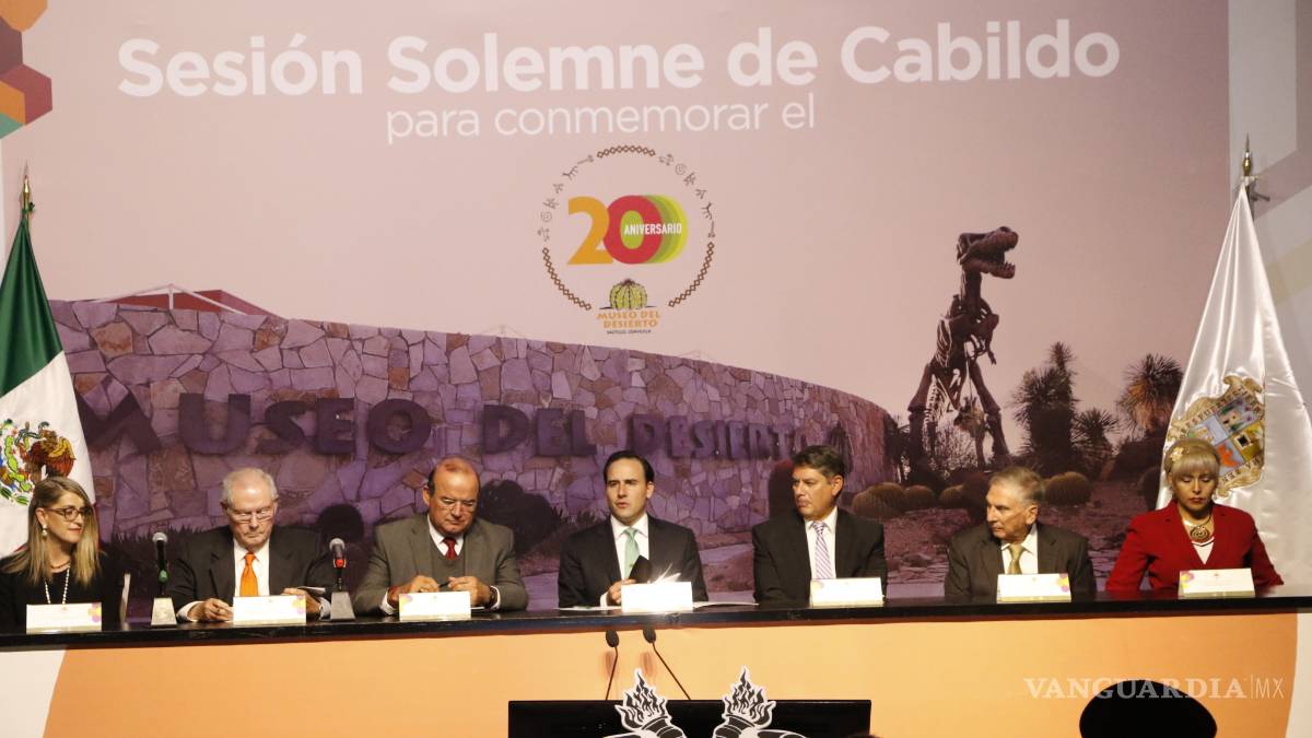En el vigésimo aniversario del Museo del Desierto, ícono nacional y referencia mundial en su trabajo paleontológico, se celebró una sesión solemne del Cabildo del Ayuntamiento de Saltillo en sus instalaciones y ahí mismo se reconoció al personal que desde su fundación ha luchado para posicionarlo como el sitio turístico más importante de la región sureste del estado.