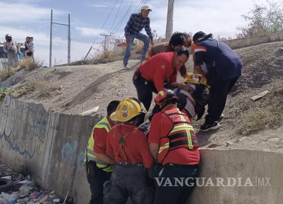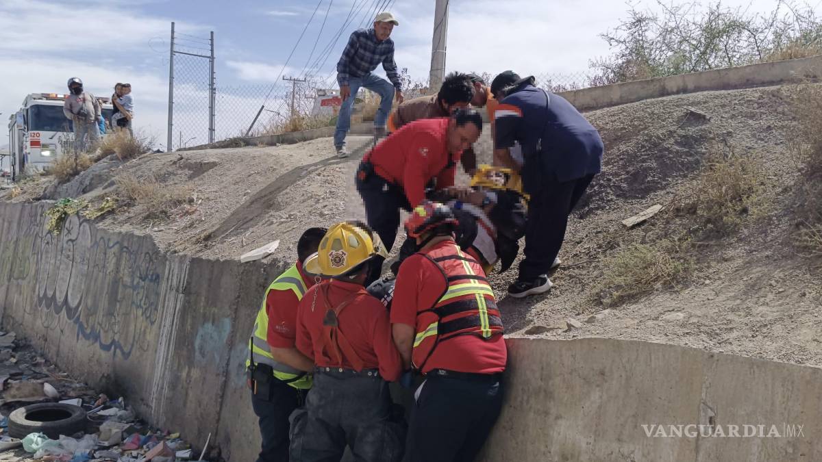 Cae motociclista desde 15 metros a un canal en Ramos Arizpe y resulta lesionado