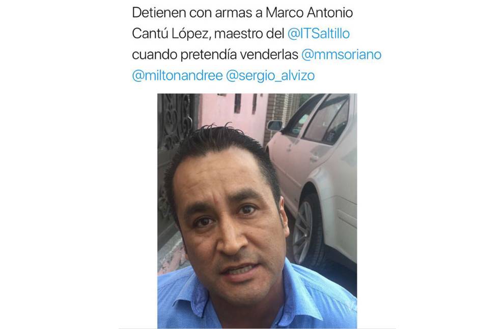 La tarde de ayer, autoridades ministeriales habrían logrado la detención de un profesor del Instituto Tecnológico de Saltillo, quien se encuentra a disposición del Ministerio Público, vinculado al uso de armas.