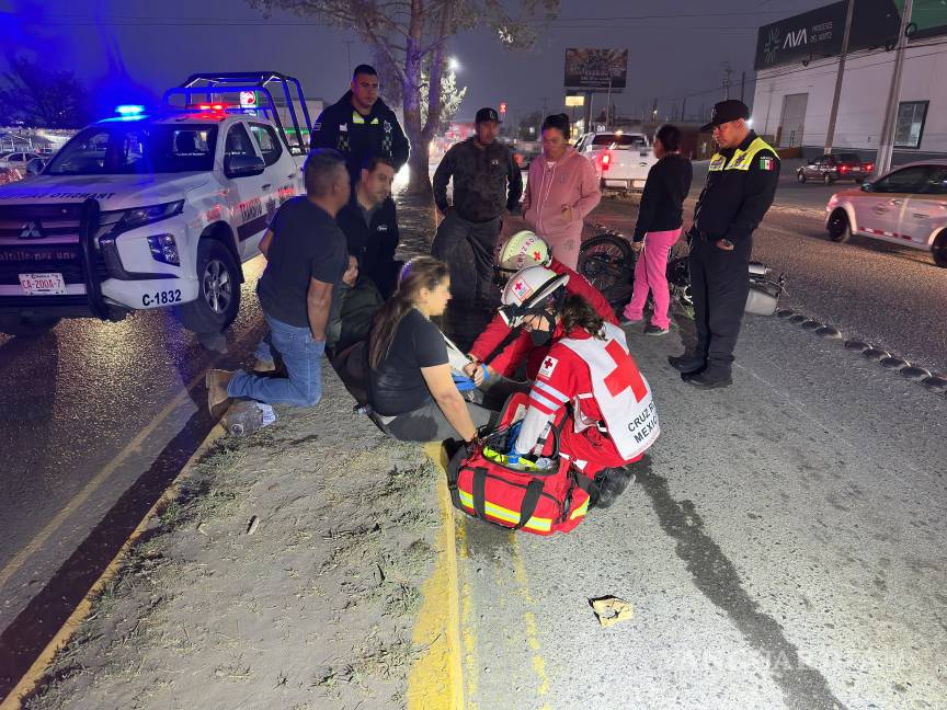 Caen motociclistas al pasar por una boyas al sur de Saltillo; son trasladadas a un hospital
