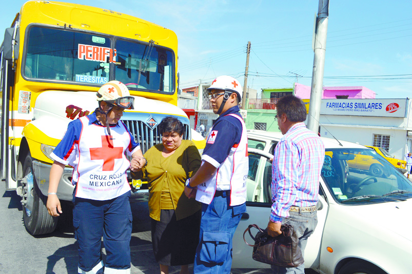 Al quedarse sin frenos luego de subir y bajar pasaje en las calles Felipe J. Mery y Urdiñola, un camión de la ruta Periférico chocó en dos ocasiones a un automóvil, donde una mujer resultó lesionada y valorada por paramédicos de la Cruz Roja.