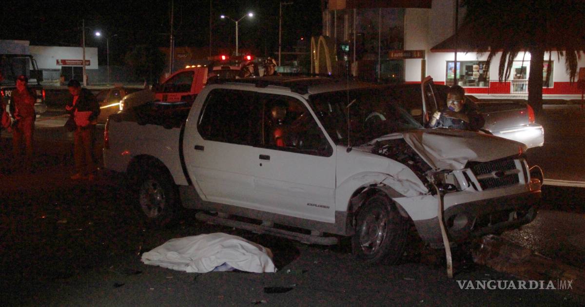 Saltillo.- Un hombre perdió la vida luego de que fuera arrollado por una camioneta que además impactó a una patrulla cuando se encontraba abanderando un choque. El occiso brindaba apoyo a su hijo, quien luego de chocar se dio a la fuga.