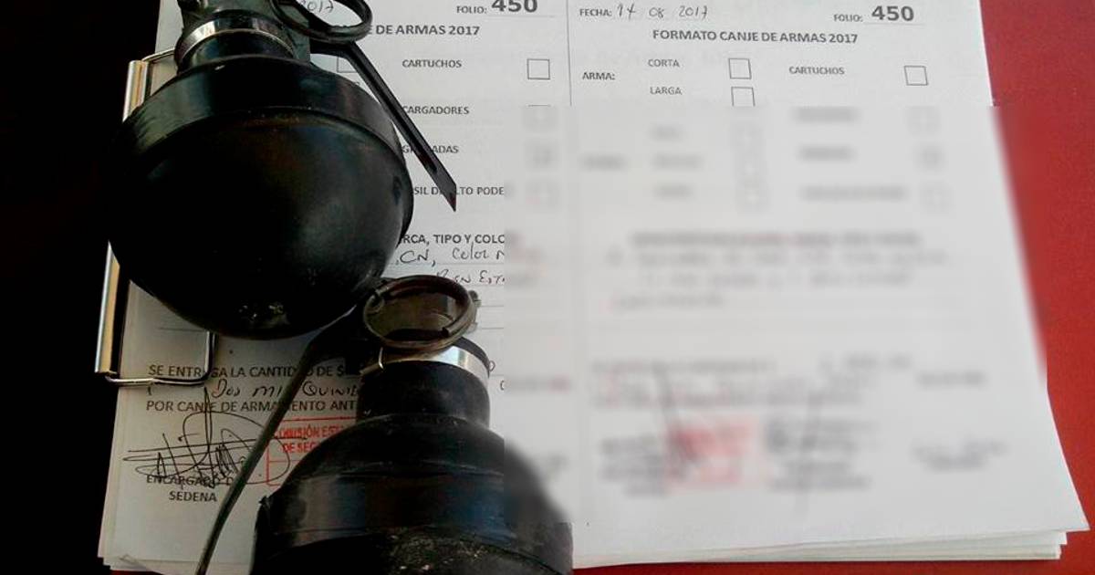 Ciudadanos de diferentes municipios del Estado hicieron entrega el día de ayer de ocho granadas, dentro del programa de Canje de Armas “Intercambio por la paz”, que promueve el Gobierno del Estado en coordinación con la Secretaría de la Defensa Nacional (Sedena).