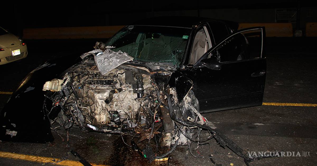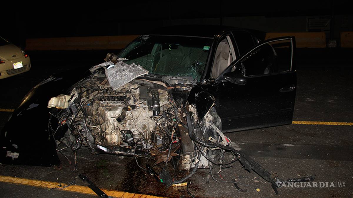 Saltillo.- Completamente destrozado terminó un Nissan Altima y su conductor lesionado luego de que perdió el control y se impactó en contra una ballena de concreto del bulevar Vito Alessio Robles, y cuando los cuerpos de emergencia atendían este accidente se presentó un segundo, ya que un automovilista distraído impactó a un vehículo por alcance, todo por estar viendo el accidente.