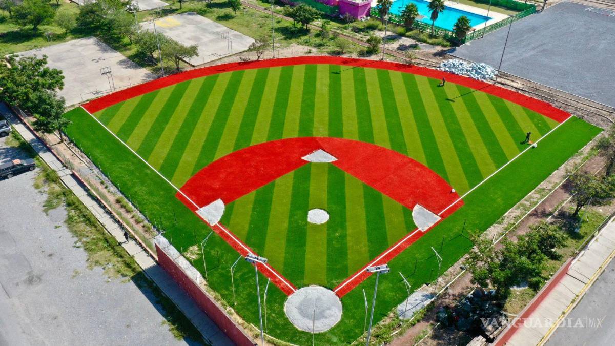 La Dirección de Infraestructura y Obra Pública del municipio informó que ya se ha colocado el pasto sintético tanto en una de las canchas de futbol como en el campo de beisbol, y actualmente se procede con la distribución de arena y caucho sobre la superficie.