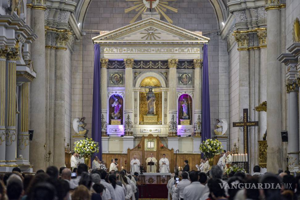 Este miércoles 16 de abril, en el atrio de la Catedral de Santiago en Saltillo, se llevó a cabo la Misa Crismal como parte de las actividades más representativas de la Semana Santa. Desde temprana hora se congregaron feligreses, religiosas y sacerdotes de las cinco vicarías que conforman la Región Sureste de Coahuila, para presenciar la bendición de los Santos Óleos y acompañar el rito encabezado por el obispo Hilario González.