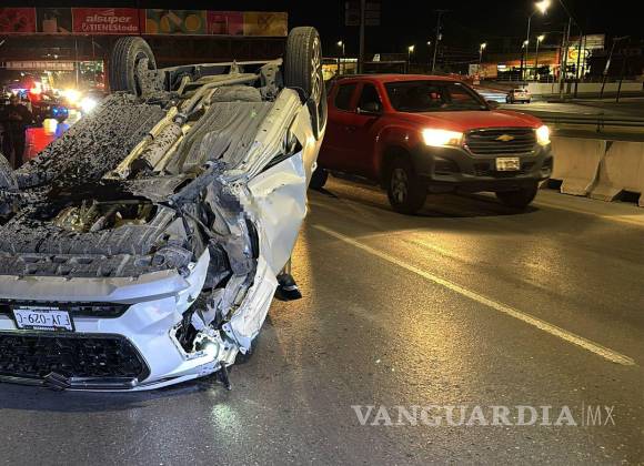 Un joven conductor, presuntamente a exceso de velocidad y con señales de haber perdido el control del volante, terminó volcando su camioneta luego de impactarse contra el muro de contención de un puente vehicular, ubicado a la altura de la colonia Morelos, al oriente de Saltillo.