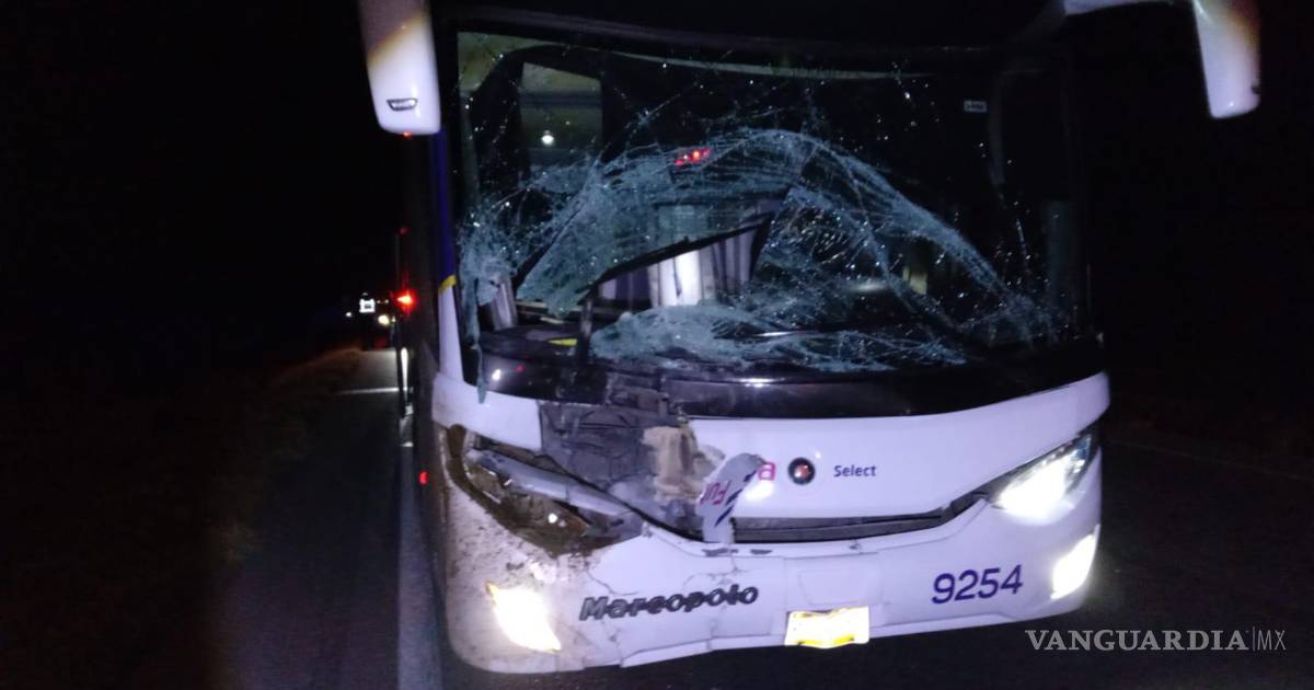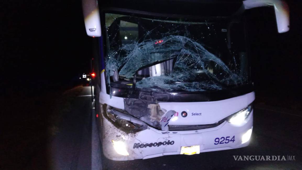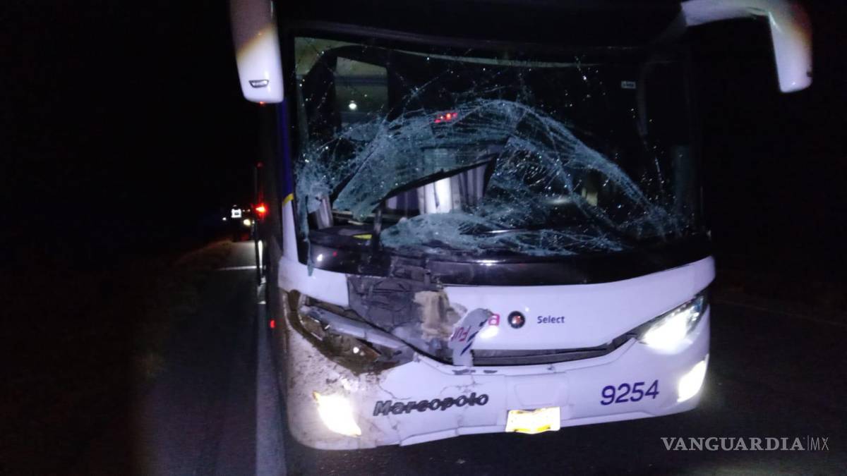 Choca autobús con un burro en la Saltillo-Torreón; deja dos pasajeros lesionados